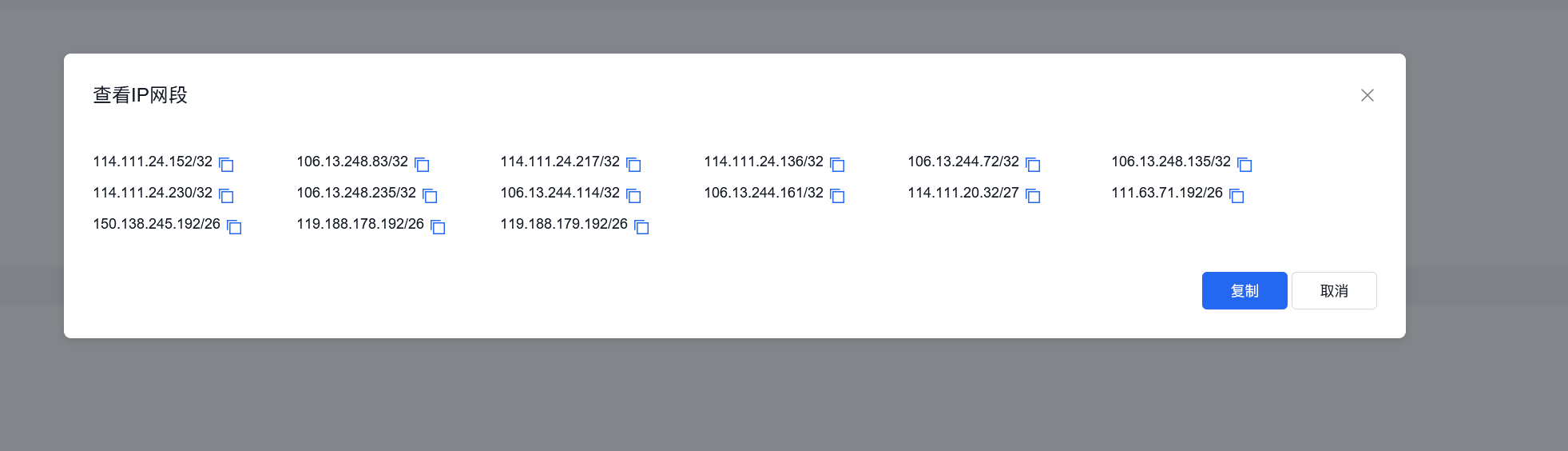 - 防火墙/NAT 回源白名单:直接按 CIDR 写即可,如